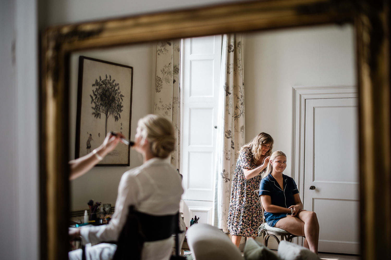 Capturing morning preparations as a wedding photographer at Pynes House is always lovely, documenting moments in its light and airy rooms overlooking the beautiful Exe Valley. One of the things that works so well at Pynes House is that the wedding couple can get ready in the same house, just on different floors. A seamless transition into the day, this can be a great way to begin the celebrations while also eliminating morning transport logistics!