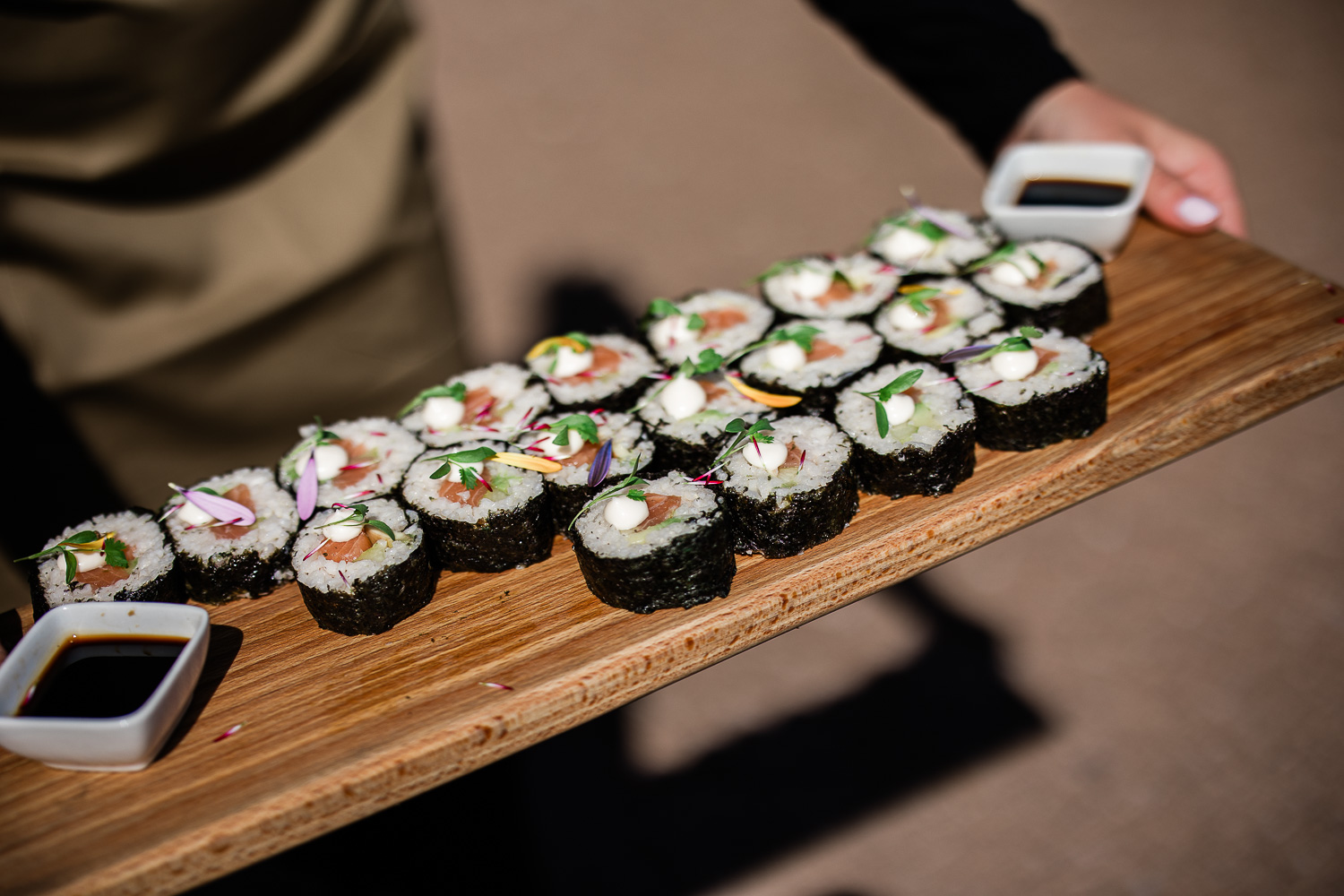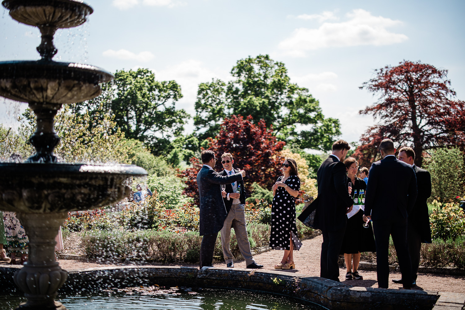 Following the ceremony, guests moved freely between the house and rose terrace, sharing stories and toasts. Framed by spring blooms and greenery, the rose terrace is always a beautiful location for Pynes House wedding reception drinks and canapés.